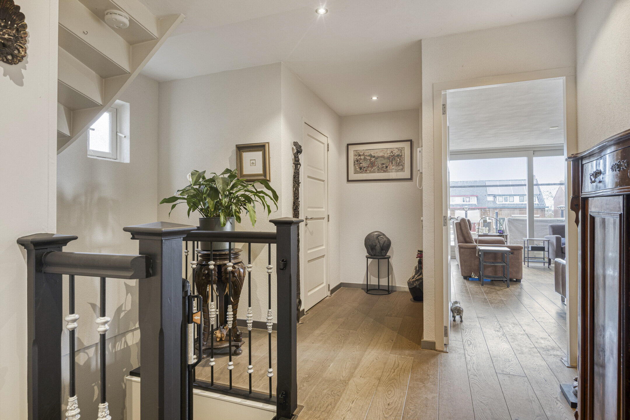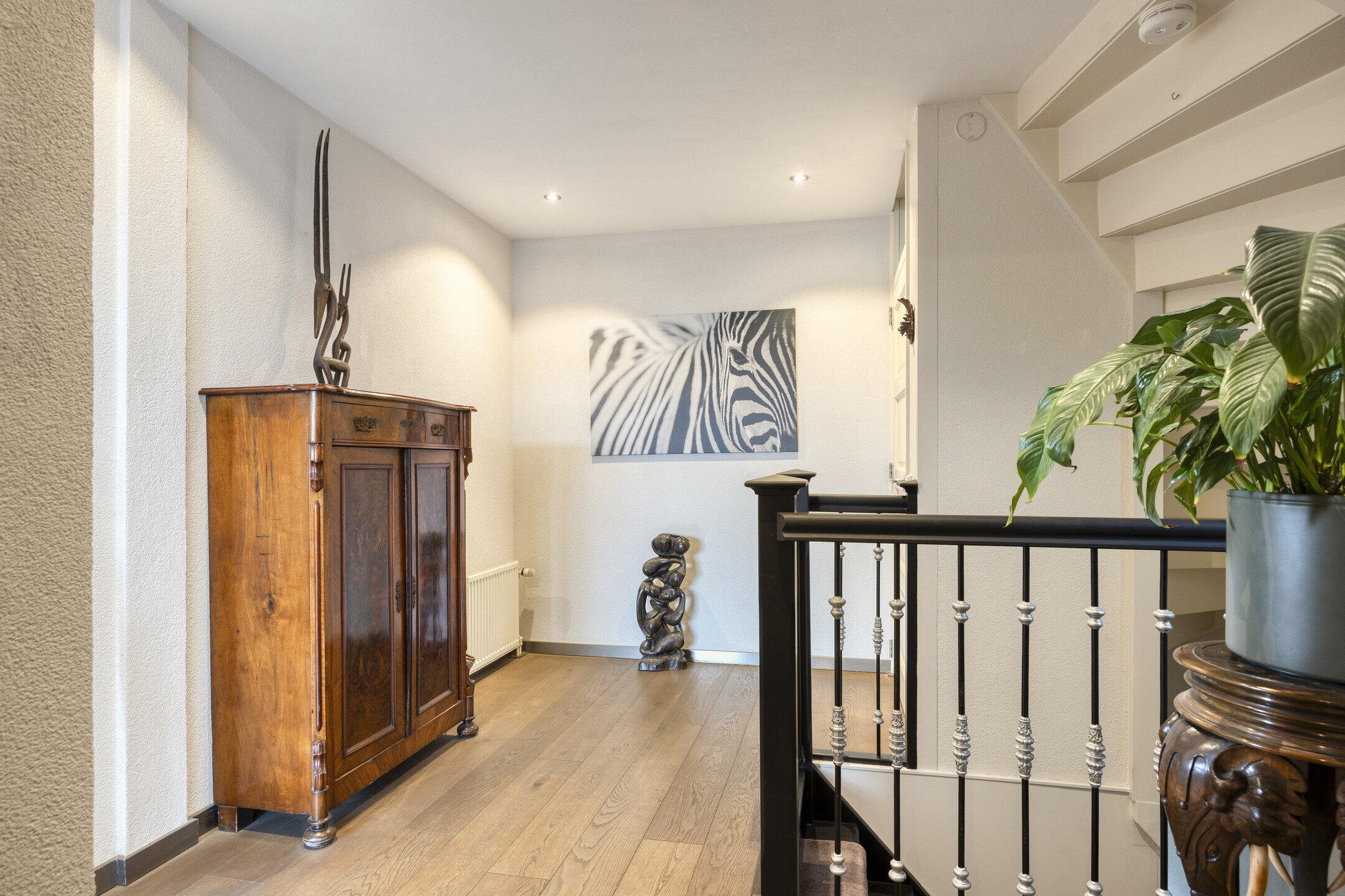 De 2e verdieping biedt een heerlijke lichte overloop, dankzij het grote daklicht. Hier vindt u nog eens drie slaapkamers, een berging met de c.v.-ketel, en een tweede badkamer. Deze badkamer is uitgerust met een ligbad, toilet en wastafel. Twee van de slaapkamers hebben bovendien toegang tot een eigen balkon, perfect voor een frisse lucht of een rustige plek om te lezen.
