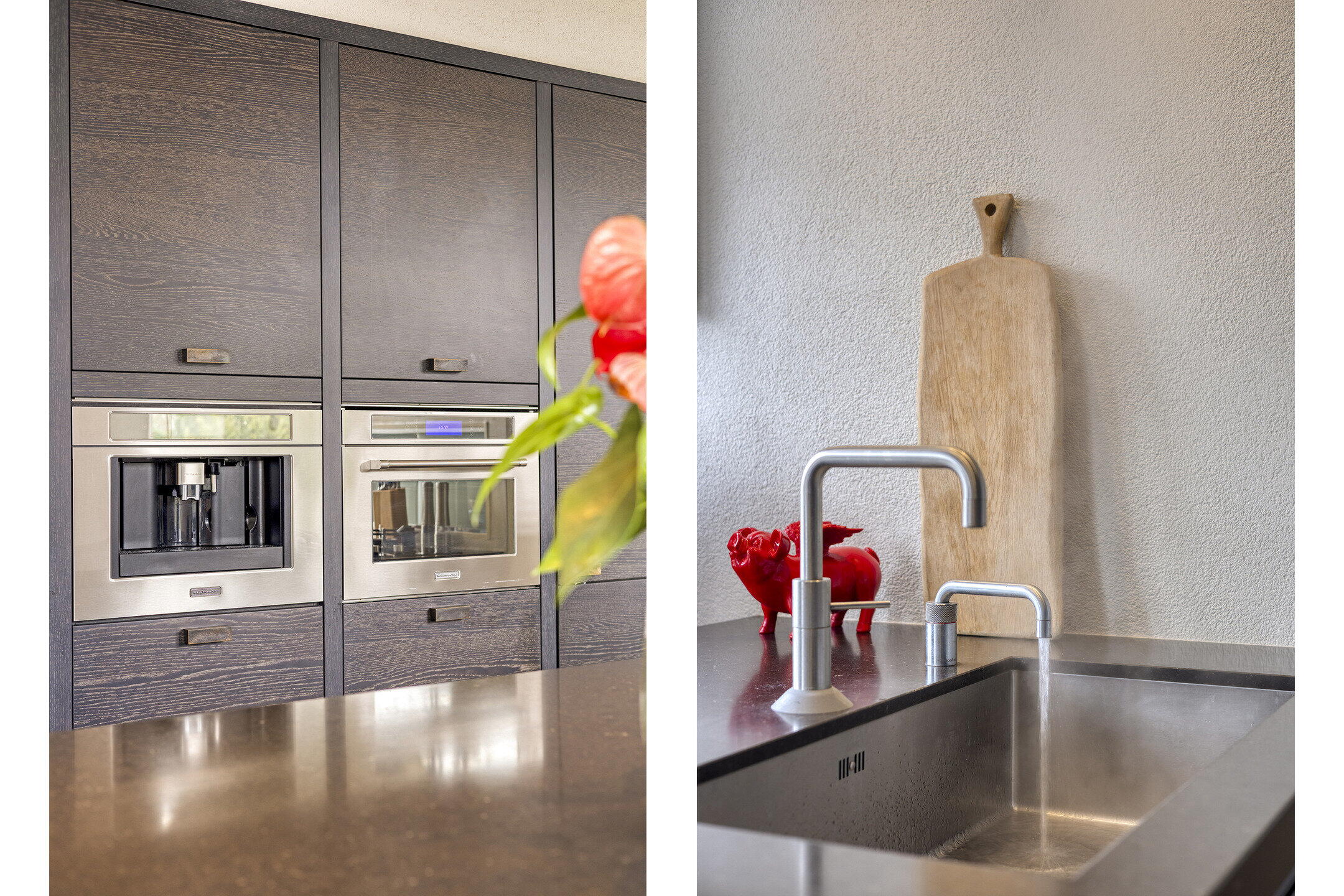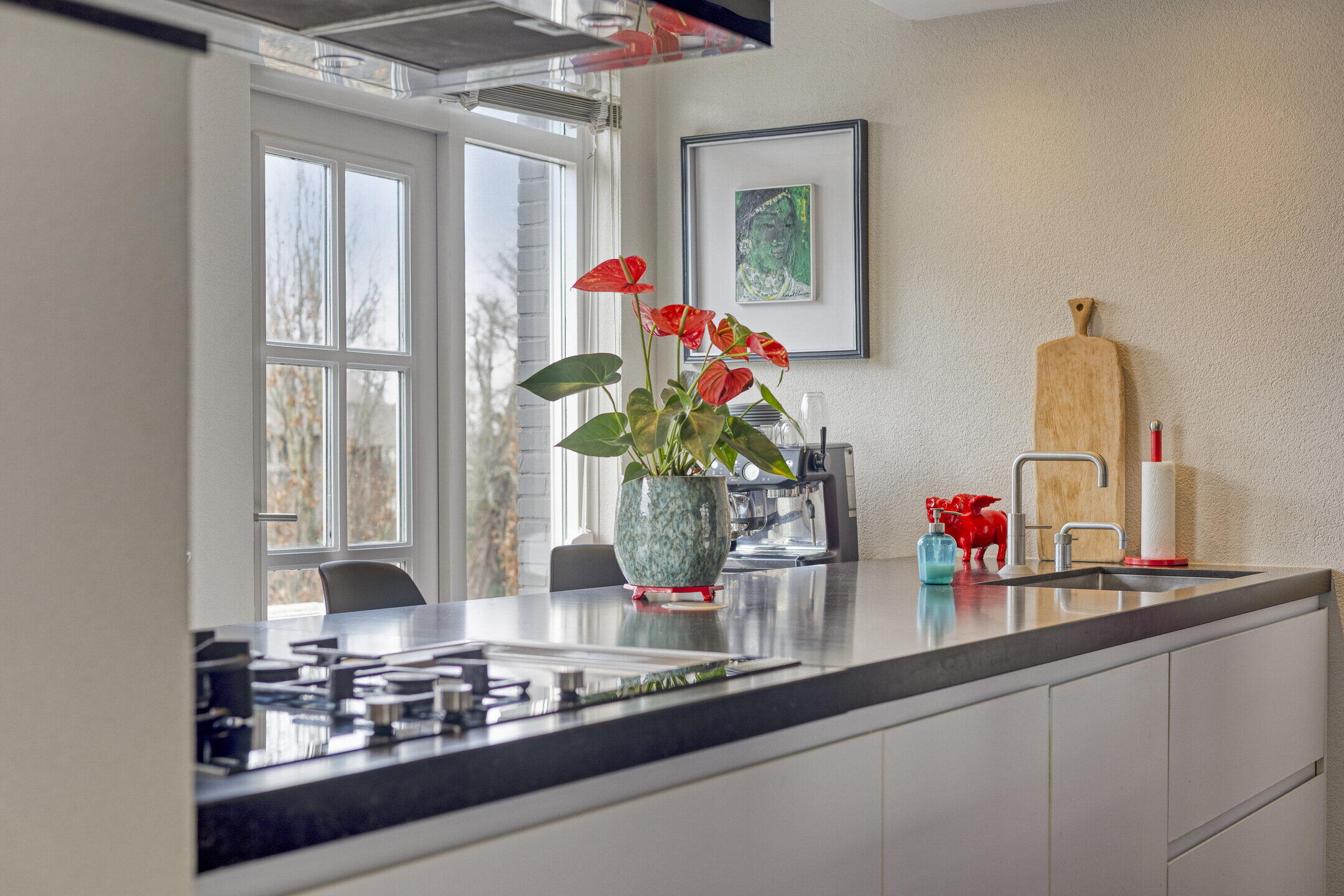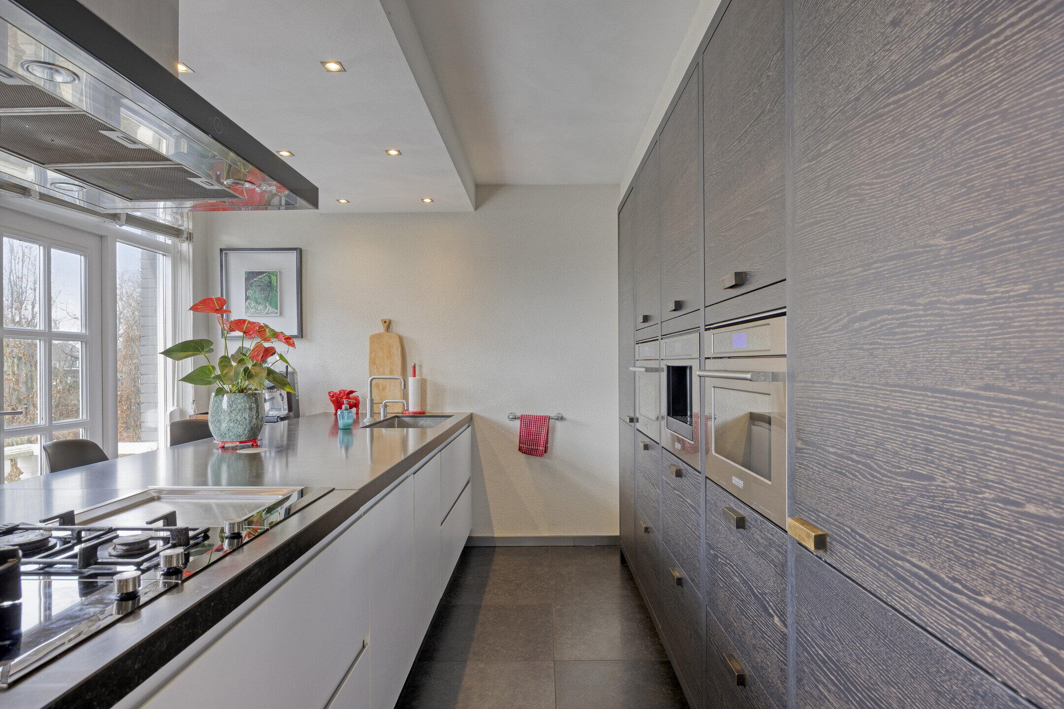 Op de 1e verdieping treft u de lichte en ruime woonkamer aan, van waaruit u aan de voorzijde de moderne woonkeuken kunt betreden. Deze keuken is een echte aanwinst en is van alle gemakken voorzien, met onder andere een kookplaat, afzuigkap, oven, combi-oven/magnetron, koelkast, vriezer, en een vaatwasser. Ook de Quooker en het koffiezetapparaat zijn aanwezig om uw kookervaring compleet te maken. Van hieruit heeft u tevens toegang tot een balkon, waar u kunt genieten van het uitzicht.