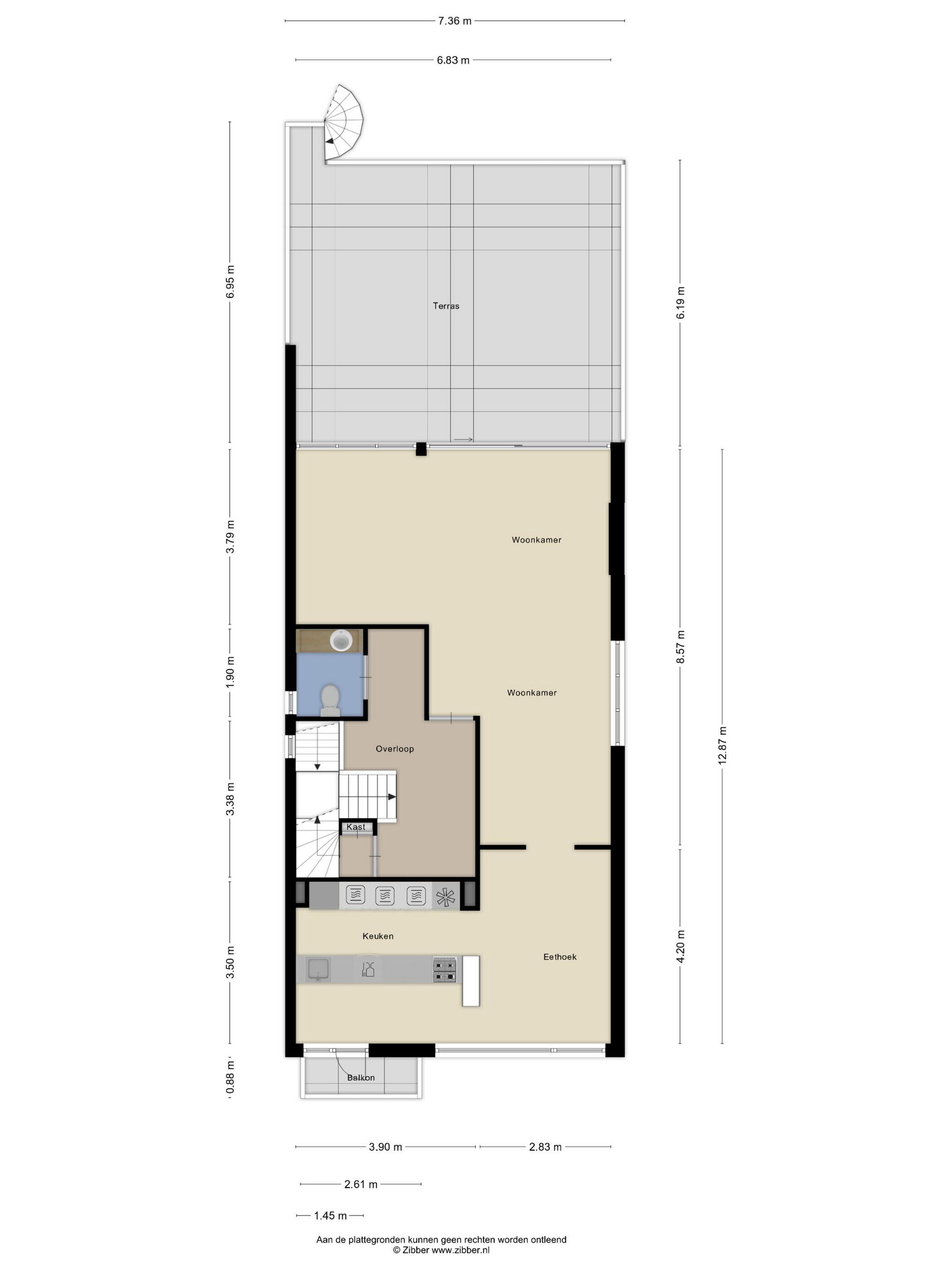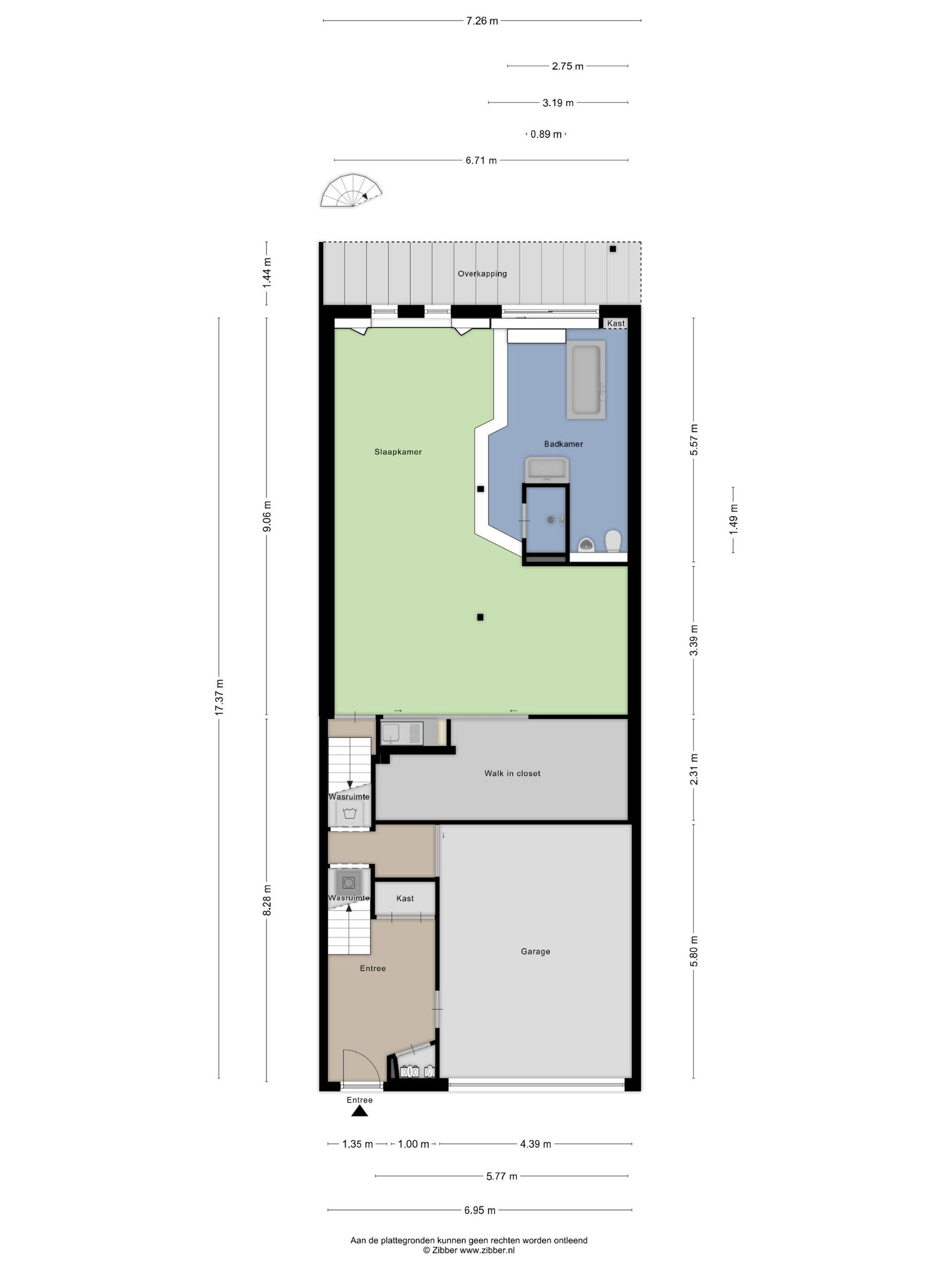 - 15 m² (2 meter diep en 7.5 meter breed)